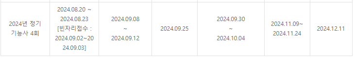 필기시험 : 2024.09.08(일) ~ 2024.09.12(목)