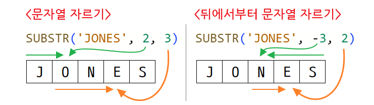 위와 같은 표에서 WHERE SUBSTR(EMP_NO, 8,1) IN('2','4') 를 실행할 경우 8번째 글자 첫번째에 '2'인 글자와 '4'인 글자를 충족하는 1번과 3번에 있는 데이터를 추출한다.