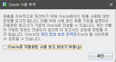 sqldeveloper > sqldeveloper.exe 실행 > 아니오 > 사용보고허용 해제 > 확인